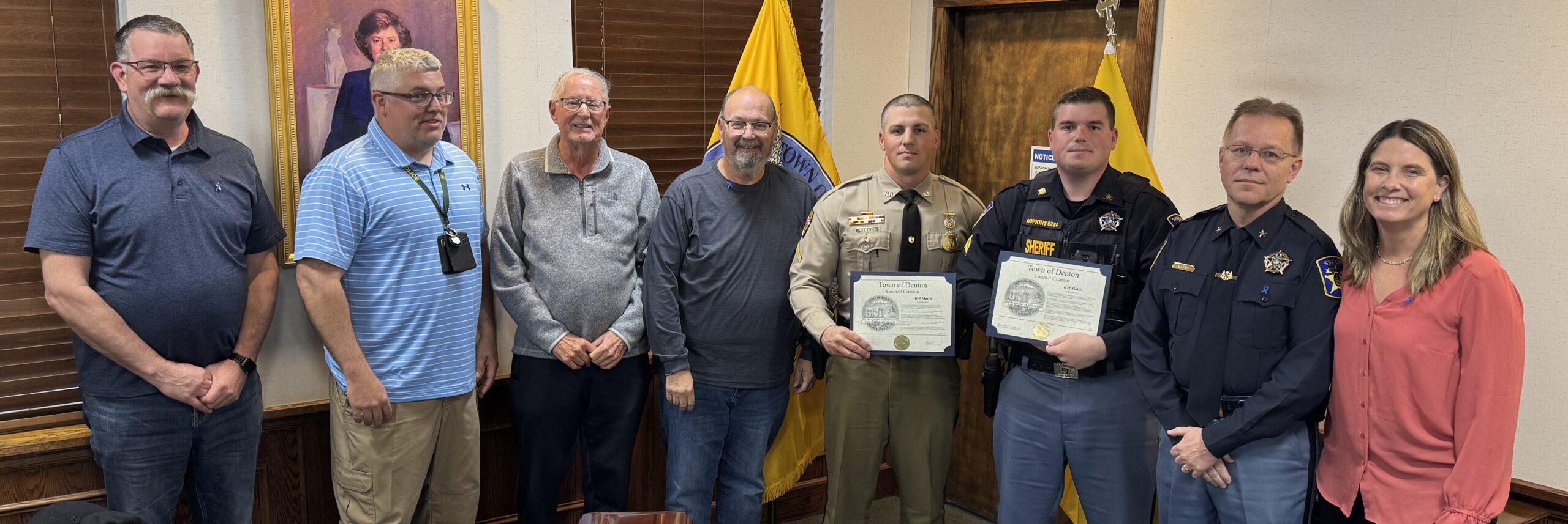 At the April 2, 2026, Denton Town Council Meeting, Town Council members presented Corp. M. Hopkins, of the Caroline County Sheriff's Office and TFC J. Rideout of the Maryland State Police, with a Council Citation in remembrance of K-9 Mattis.